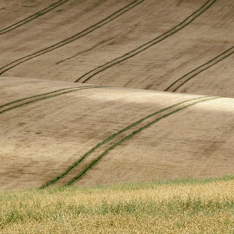 (Photos of windrows and bales are harder and harder to come by. When we first lived here, there were several days from combining when I could find interesting patterns in the aftermath, but now the trend is to cut, bale and cart away all in one day.)